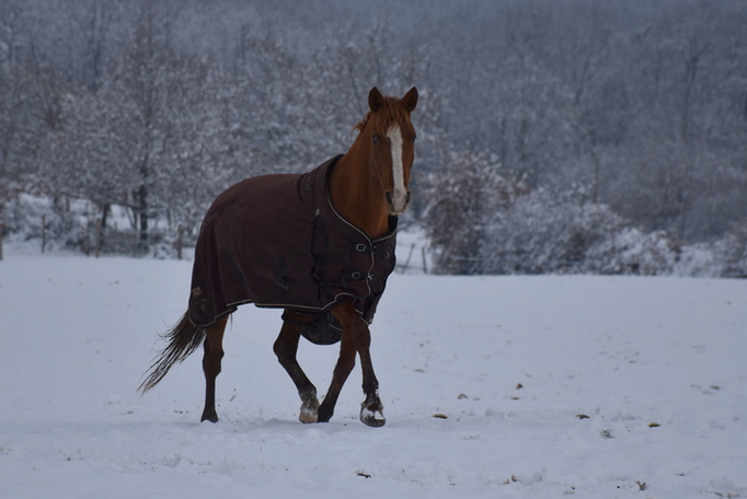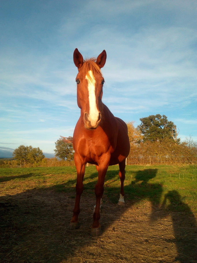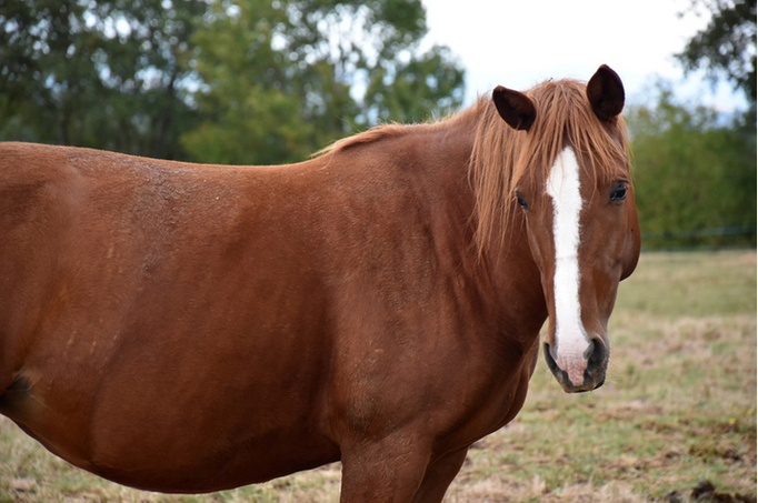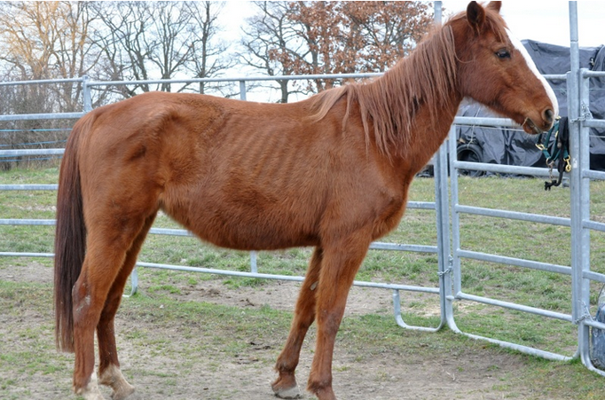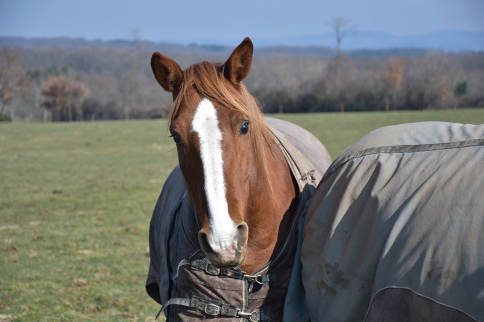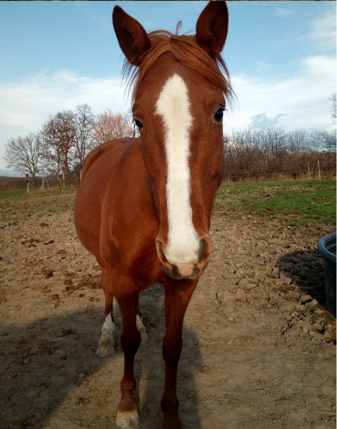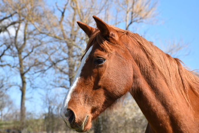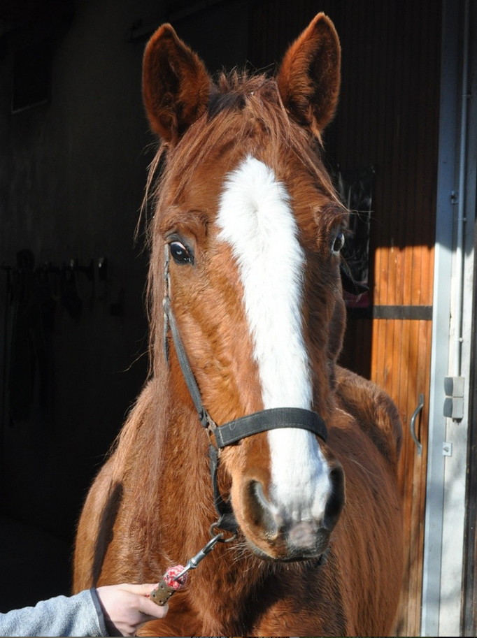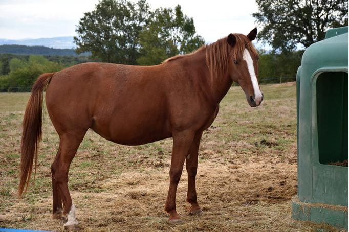 Kaline vivait une vie de cheval de club avant de devenir aveugle. C'est en février 2016 qu'elle a rejoint le refuge. Ses anciens propriétaires nous avaient demandé de placer Kaline sous contrat de l'association ce que nous avons fait. Lors d'un contrôle nous nous sommes rendu compte que les conditions d'hébergement et de soins n'étaient pas respectés, et nous avons donc retiré Kaline dans l'urgence car son état était très inquiétant.